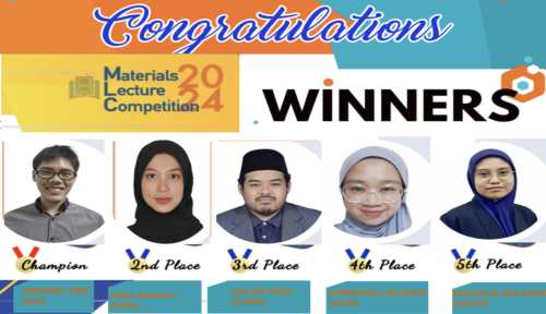 Universiti Malaya (UM) proudly hosted the Materials Lecture Competition (MLC) 2024, in collaboration with the Institute of Materials, Malaysia (IMM) and the Institute of Materials, Minerals and Mining, UK (IOM3-UK). The semi-final and final rounds were successfully held online via Zoom on 3 September 2024 and 24 September 2024, respectively, and were livestreamed on the Faculty of Mechanical Engineering, UM Facebook page.